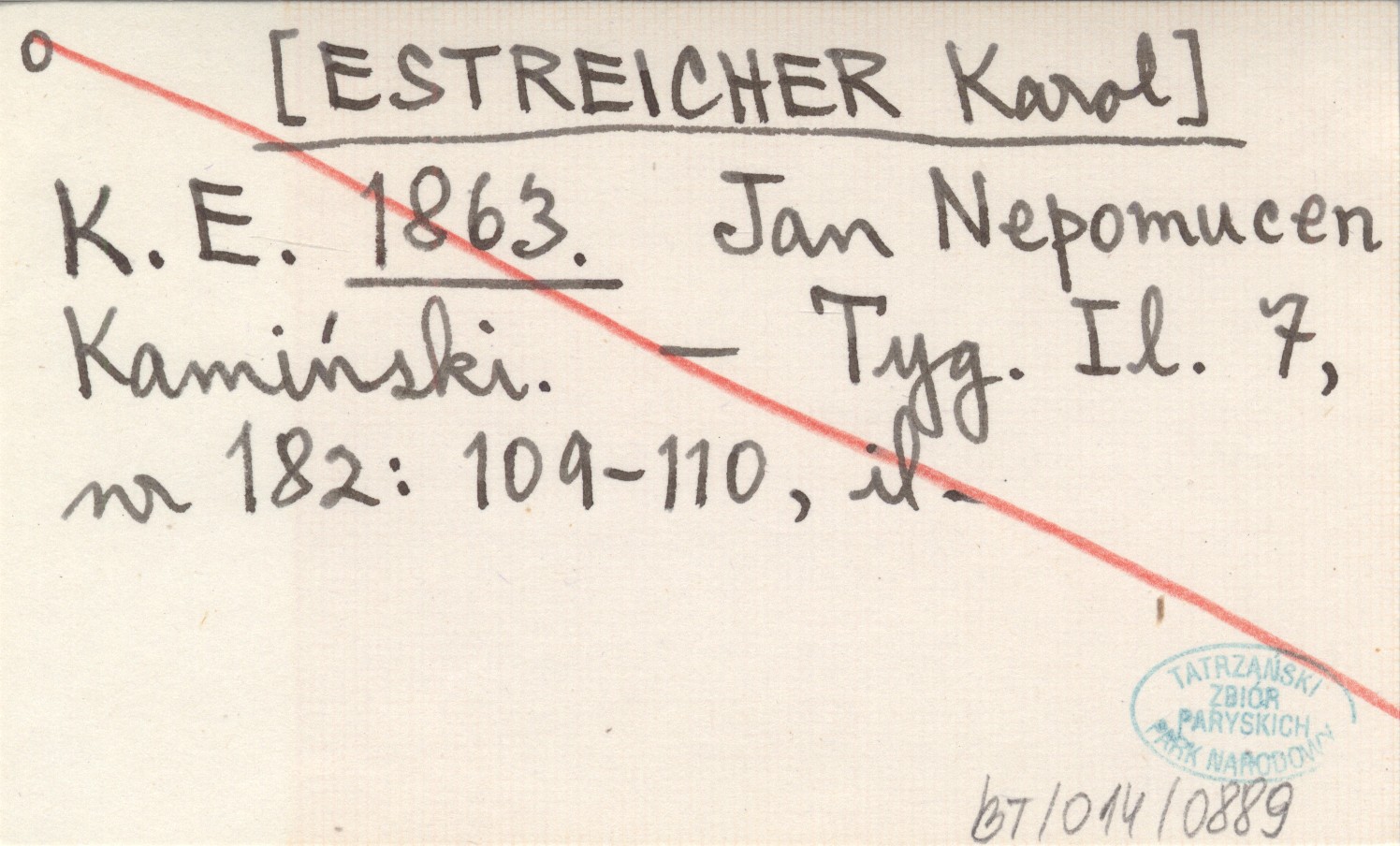 K. E. [ESTREICHER Karol] 1863 Jan Nepomucen Kamiński.