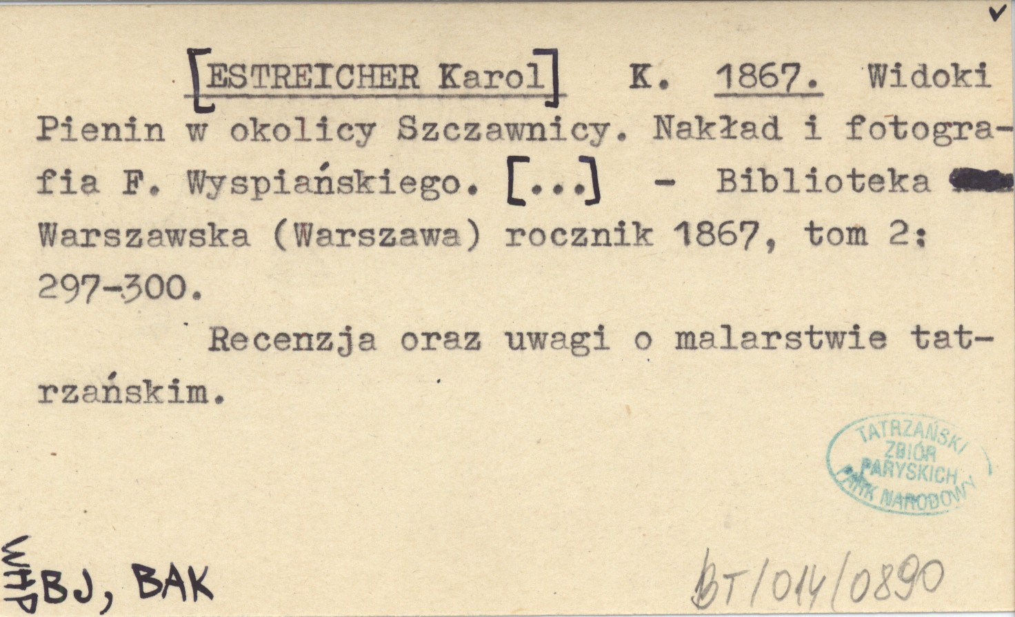Biblioteka Warszawska (Warszawa) , R. 1867, t. 2: 297-300. Recenzja oraz uwagi o malarstwie tatrzańskim.