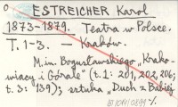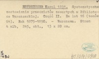 ESTREICHER Karol 1891 Systematyczne zestawienie przedmiotów zawartych w Bibliotece Warszawskiej. Część II. Za lat 16 (tomów 64). Rok 1875-1890.