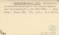 ESTREICHER Karol 1875 Zestawienie przedmiotów zawartych w 136 tomach "Biblioteki Warszawskiej" z lat 1841-1874.