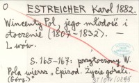 ESTREICHER Karol 1882 Wincenty Pol, jego młodość i otoczenie (1807-1832).