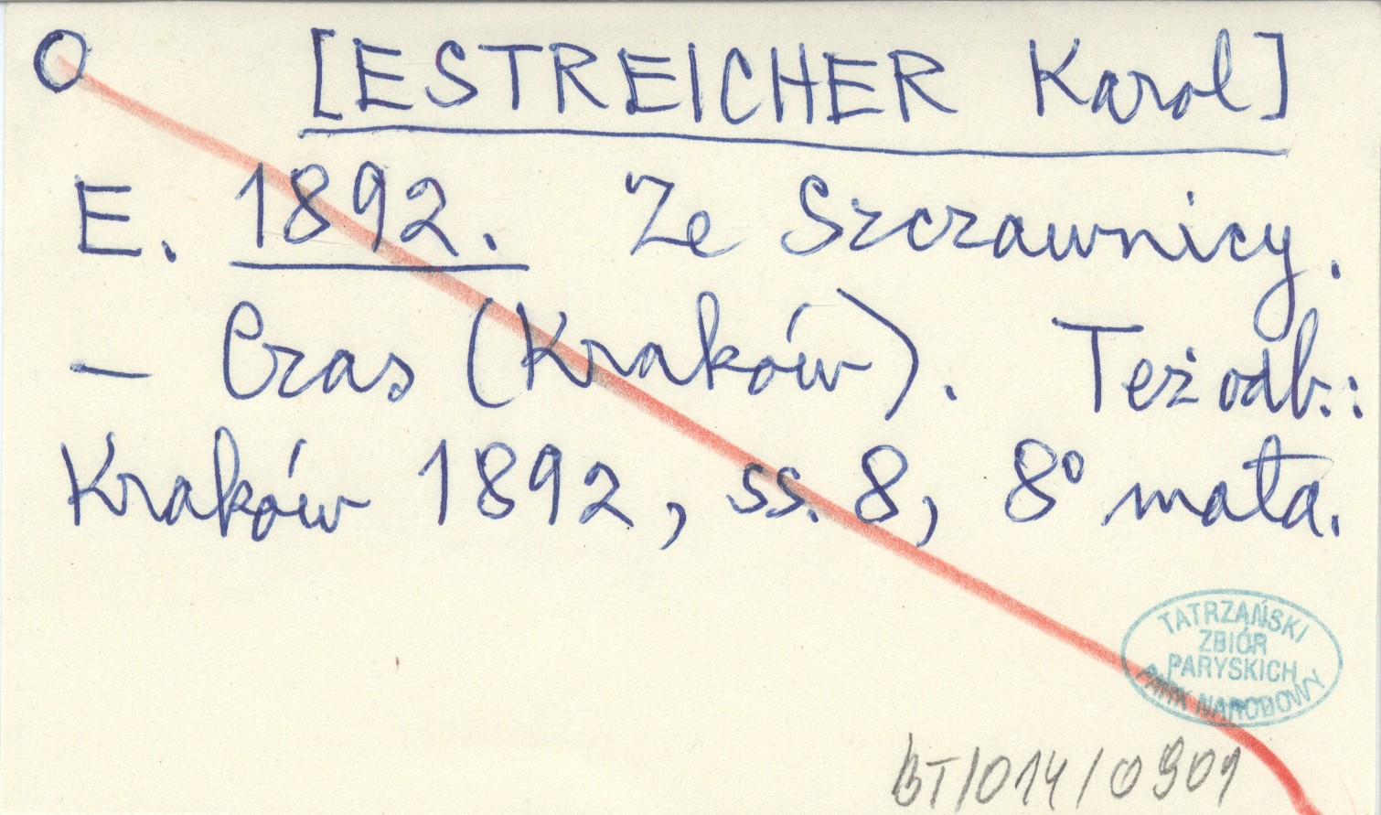 Czas (Kraków) , Też odb.: Kraków 1892, 8 s., 8° mała.
