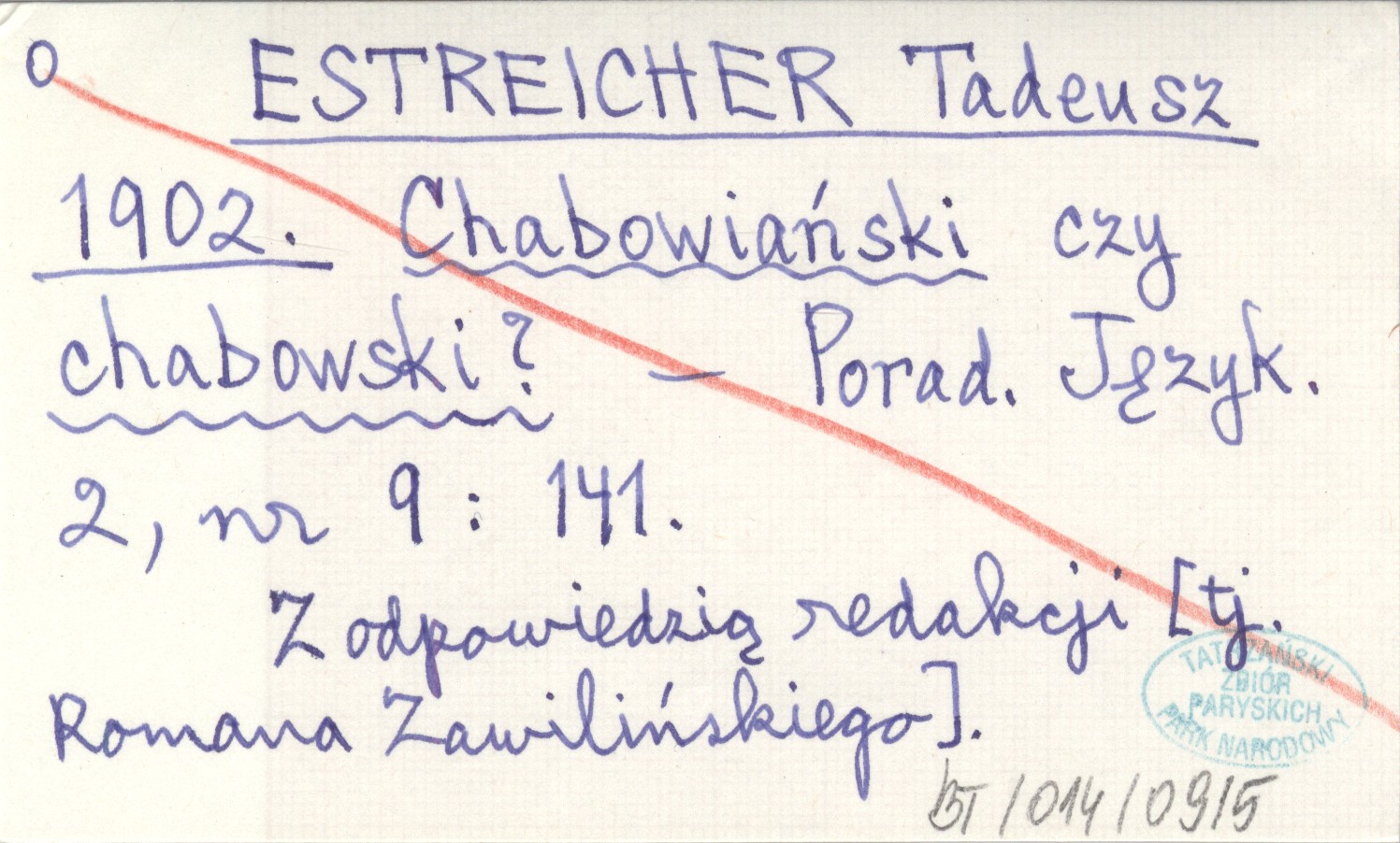 ESTREICHER Tadeusz 1902 Chabowiański czy chabowski?