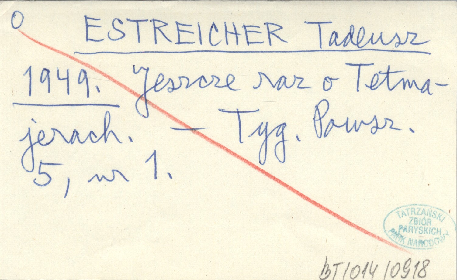 ESTREICHER Tadeusz 1949 Jeszcze raz o Tetmajerach.