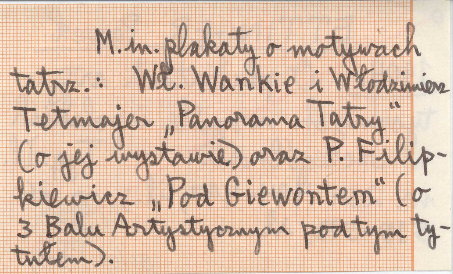 Tygodnik Ilustrowany, Nr 25: 494-497, il. ; nr 26: 510-513, il. M. in. plakaty o motywach tatrzańskich: Wł. Wankie i Włodzimierz Tetmajer "Panorama Tatry" (o jej wystawie) oraz P. Filipkiewicz "Pod Giewontem" (o 3 Balu Artystycznym pod tym tytułem).