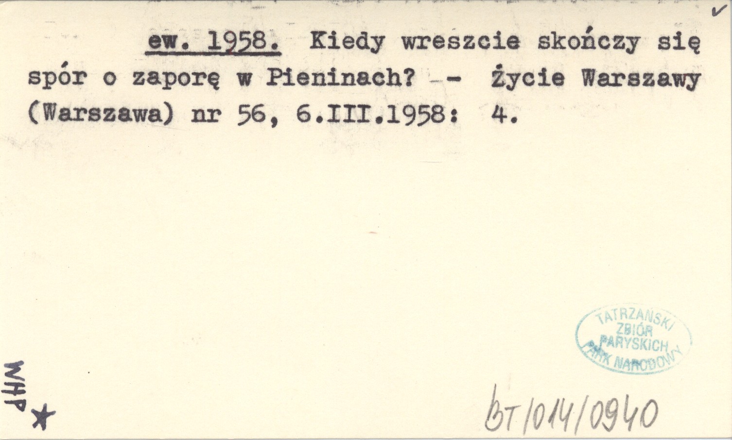 ew. 1958 Kiedy wreszcie skończy się spór o zaporę w Pieninach?