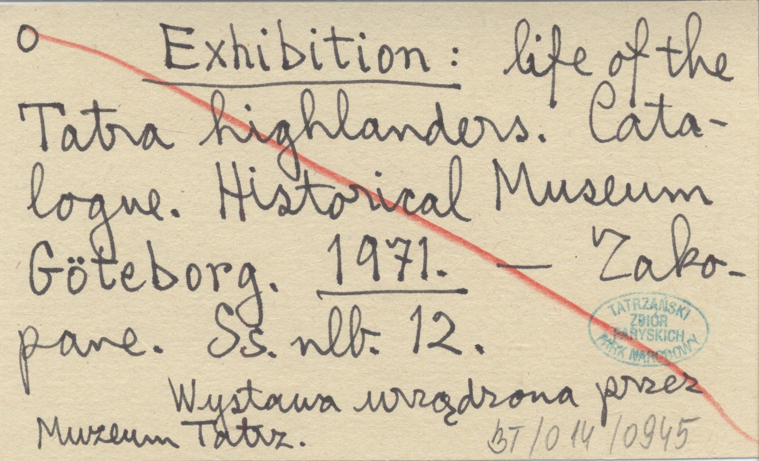 Exhibition: life of the Tatra highlanders. Catalogue. Historical Museum Göteborg. 1971