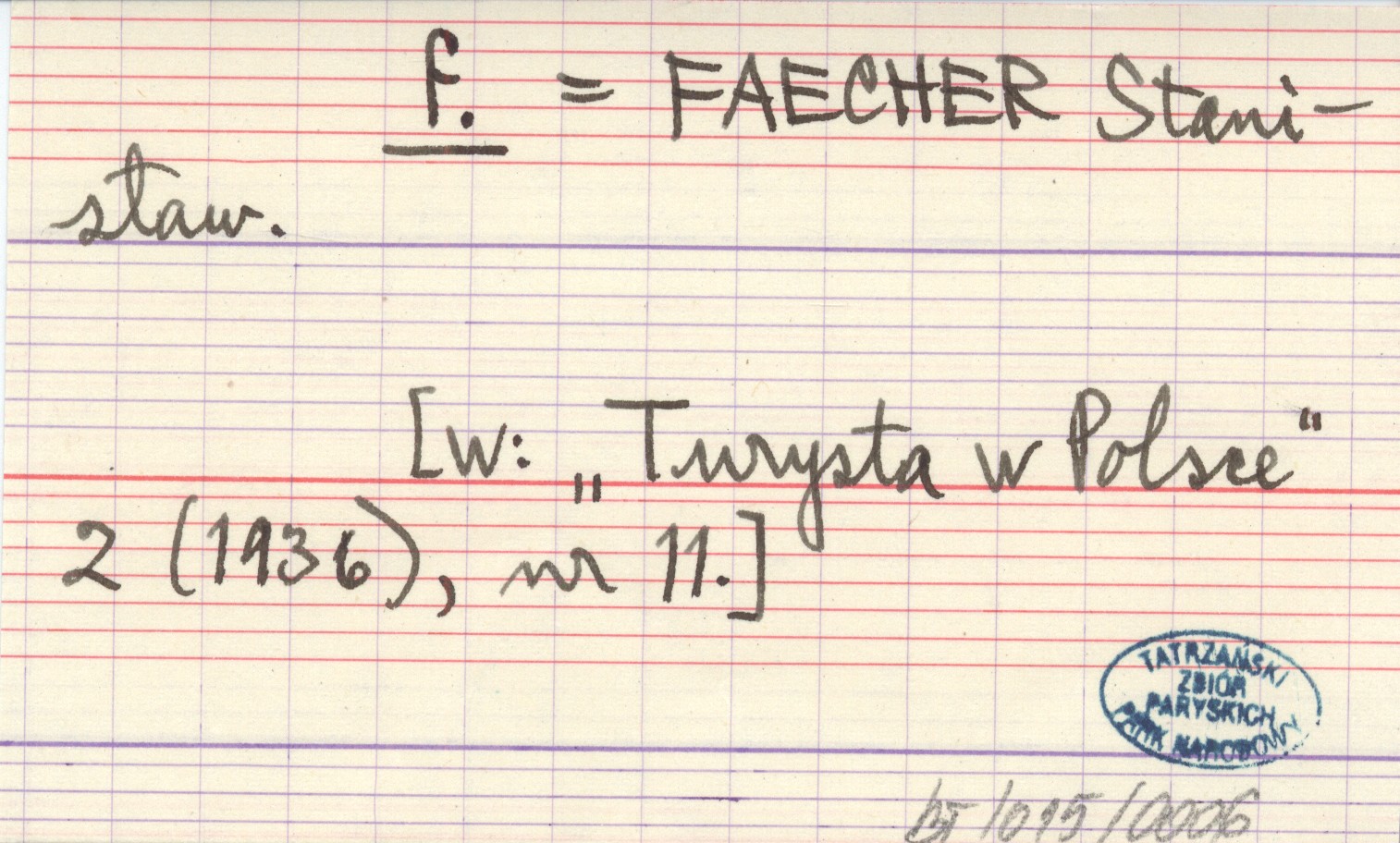 f. FAECHER Stanisław Turysta w Polsce 2 (1936), nr 11.