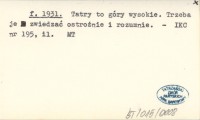 f. 1931 Tatry to góry wysokie. Trzeba je zwiedzać ostrożnie i rozumnie.