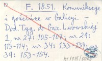 F. 1851 Komunikacye i gościńce w Galicyi.
