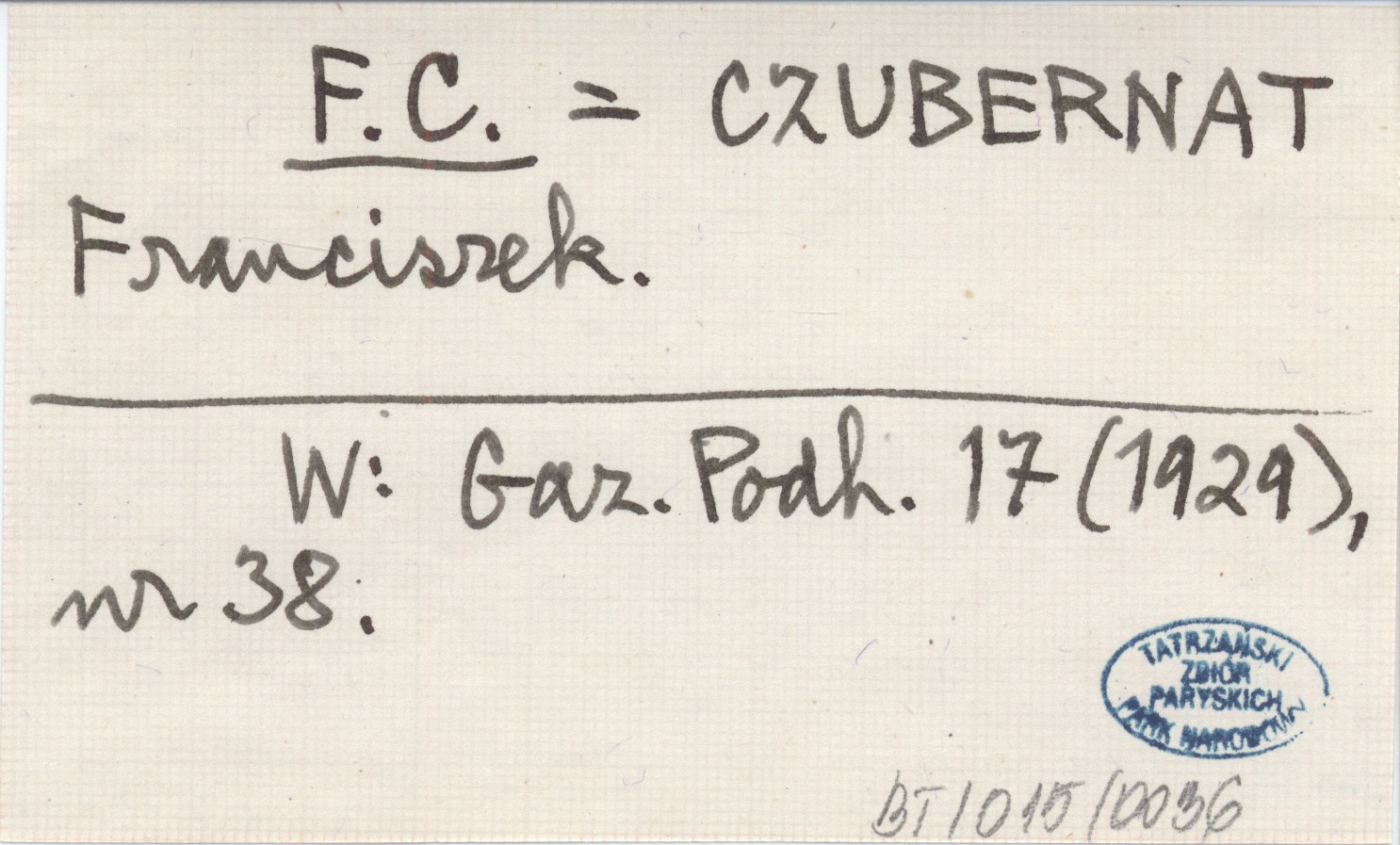 F. C. CZUBERNAT Franciszek Gazeta Podhalańska 17 (1929), nr 38.