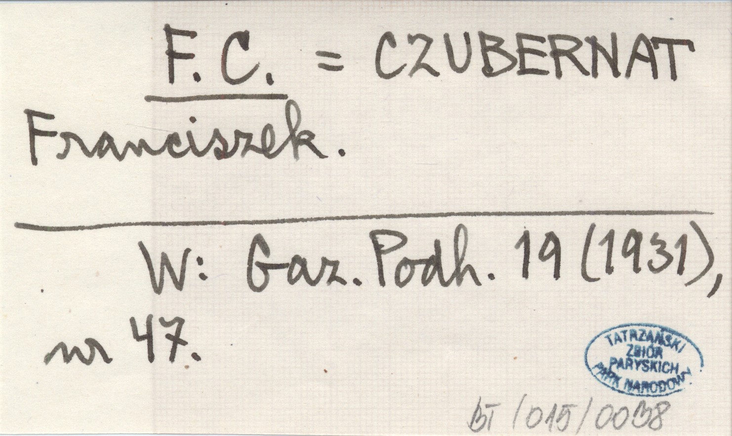 F. C. CZUBERNAT Franciszek Gazeta Podhalańska 19 (1931), nr 47.