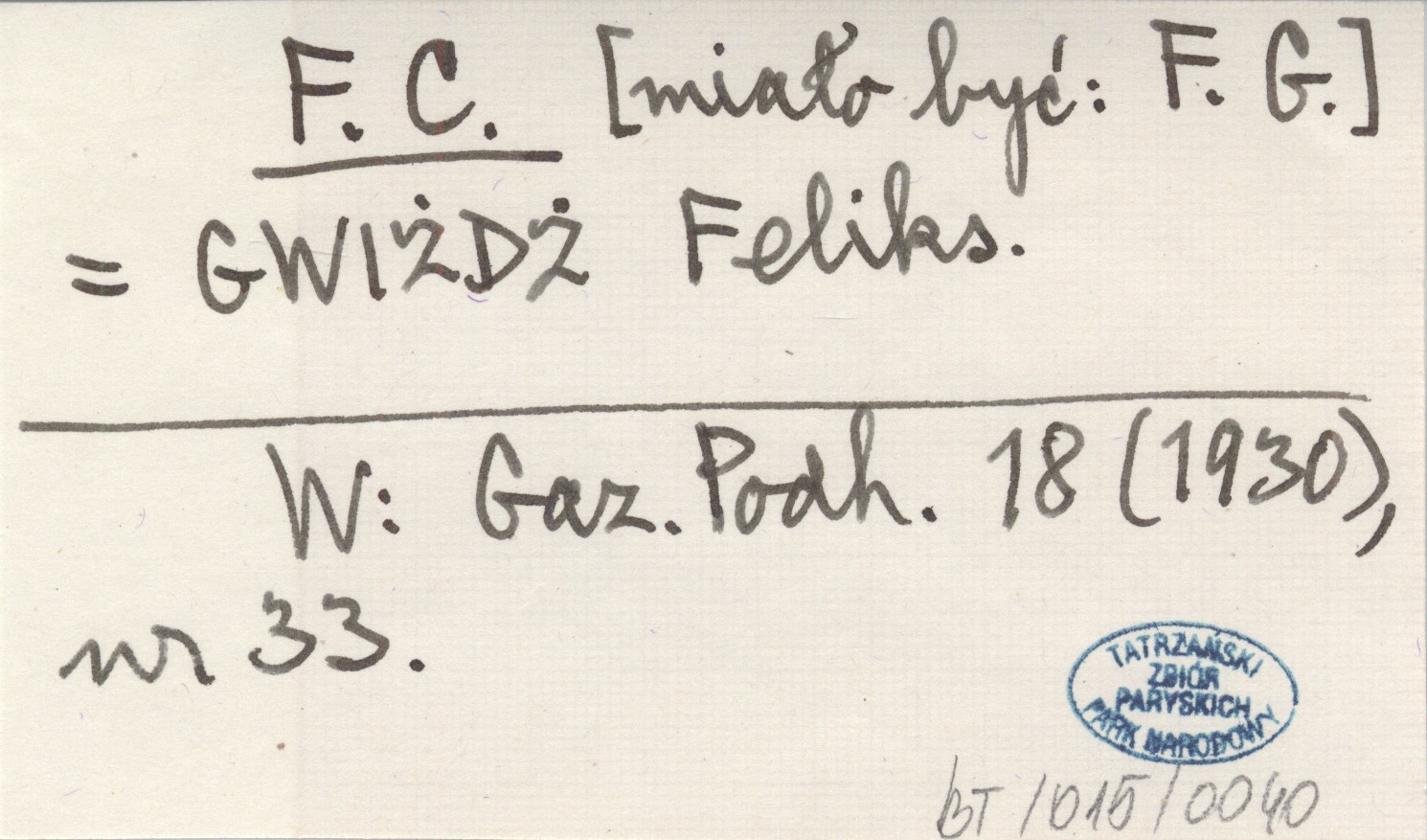 F. C. [miało być: F. G] GWIŻDŻ Feliks Gazeta Podhalańska 18 (1930), nr 33.