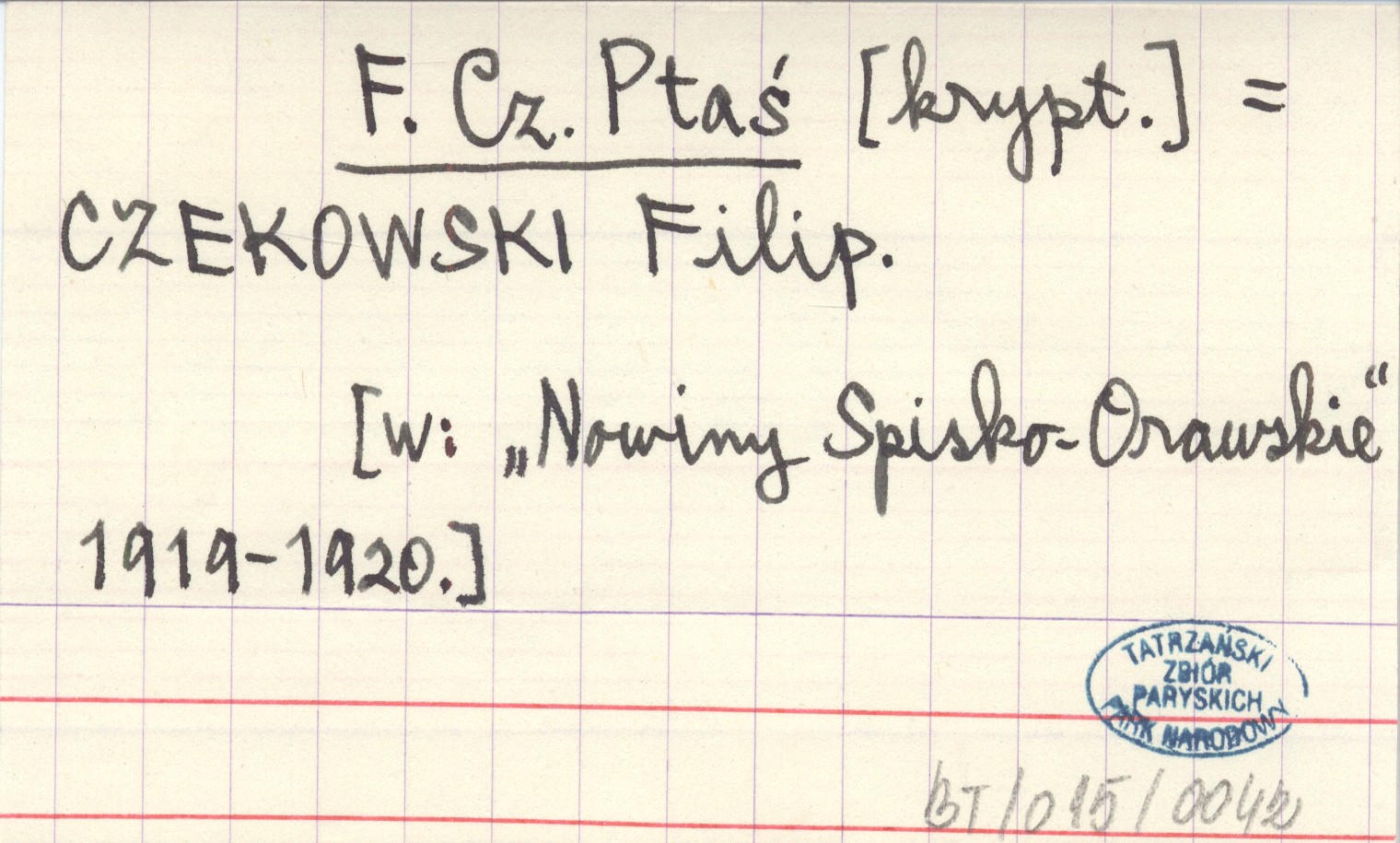 F. Cz. Ptaś CZEKOWSKI Filip Nowiny Spisko-Orawskie 1919-1920.
