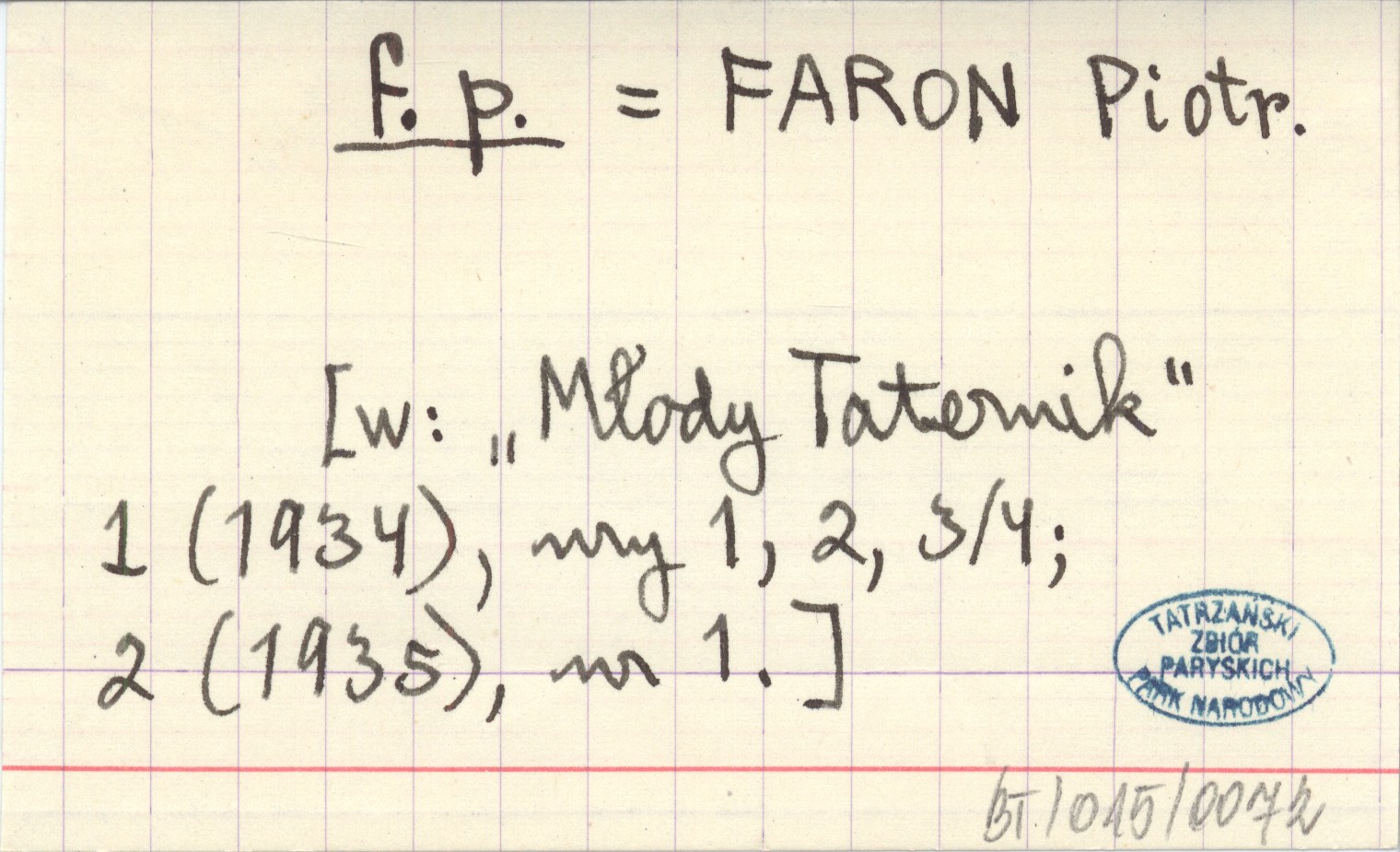 f. p. FARON Piotr Młody Taternik 1 (1934), nr 1, 2, 3-4 ; 2 (1935), nr 1.