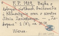 F. P. 1929 Bajka o dobrych ciotkach Gminowefie i Klimentynie oraz o sierotce Józiu Zaniedbanym.