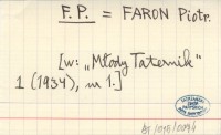 f. p. FARON Piotr Młody Taternik 1 (1934), nr 1, 2, 3-4 ; 2 (1935), nr 1.