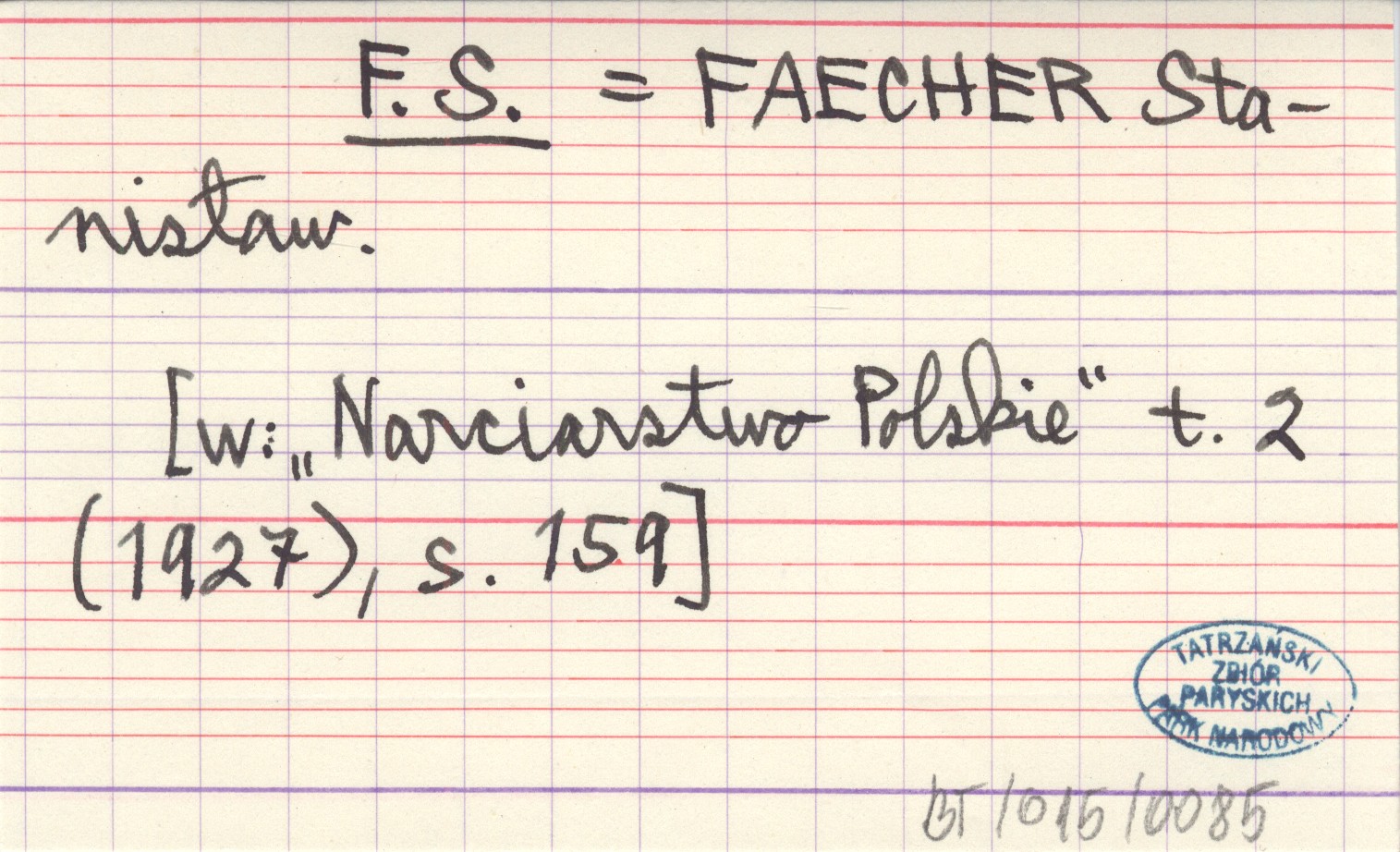 F. S. FAECHER Stanisław Narciarstwo Polskie T. 2 (1927): 159.