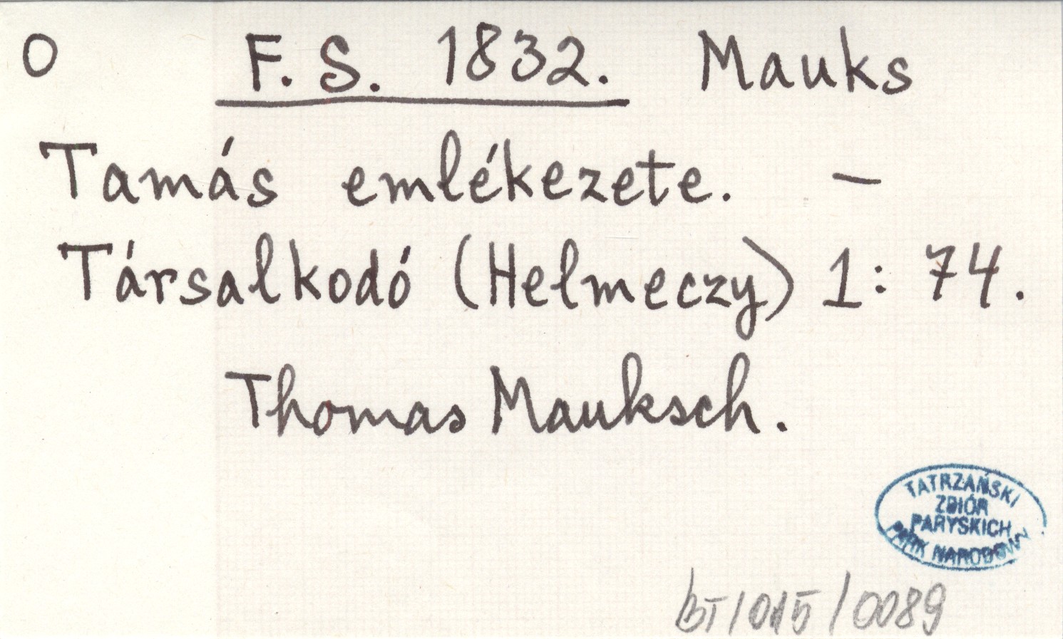 Mauks Tamás emlékezete.