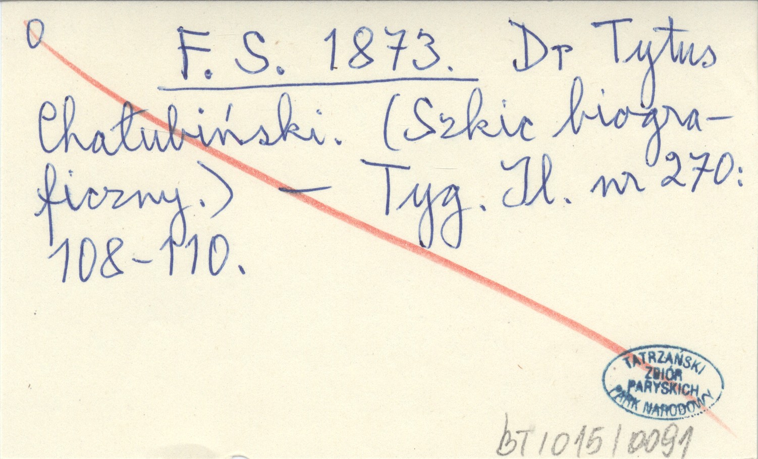 F. S. 1873 Dr Tytus Chałubiński. (Szkic biograficzny).