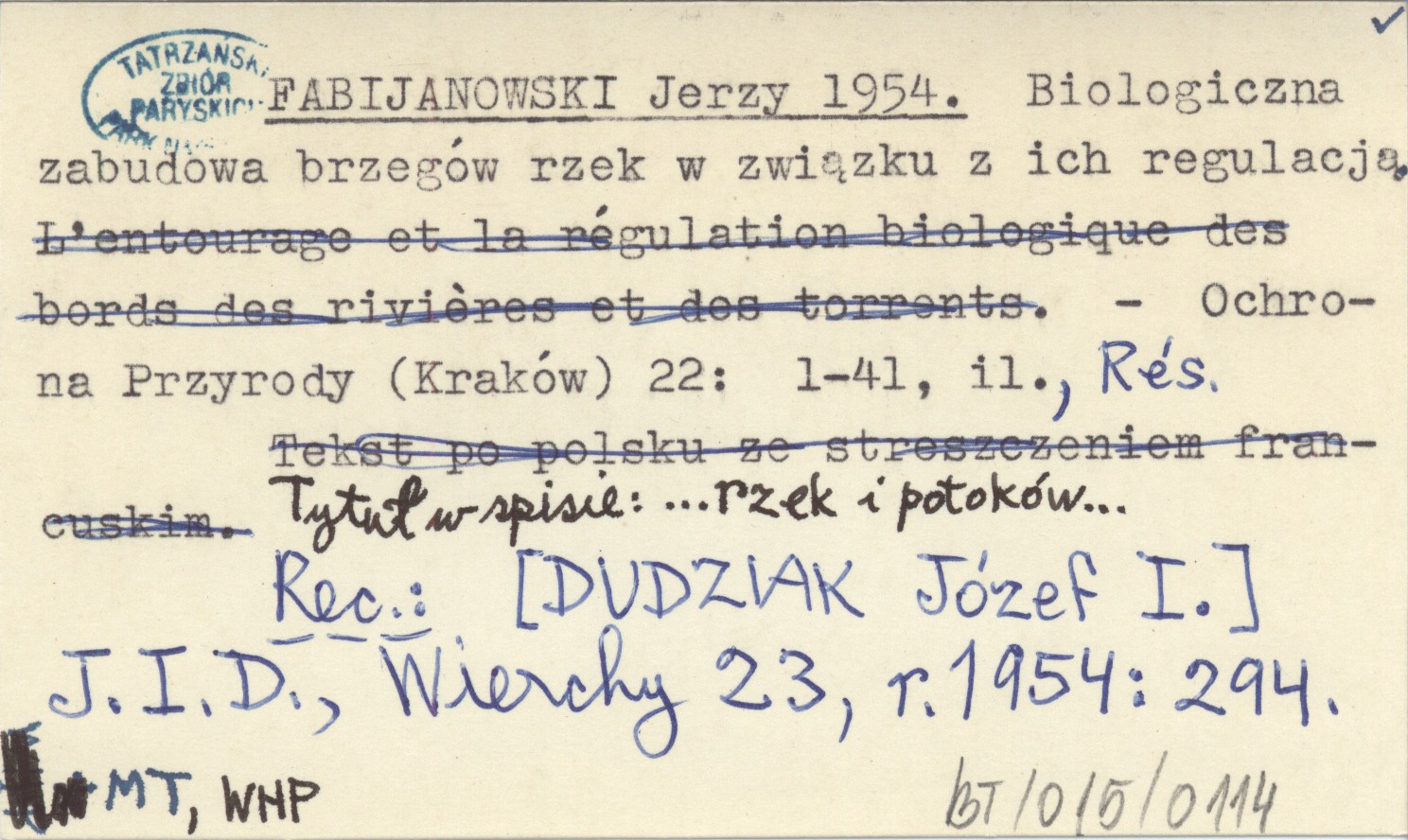Ochrona Przyrody (Kraków) , 22: 1-41, il., Rés. Tytuł w spisie: ... rzek i potoków ... REC: [DUDZIAK Józef I.] J. I. D., Wierchy 23, r. 1954: 294.