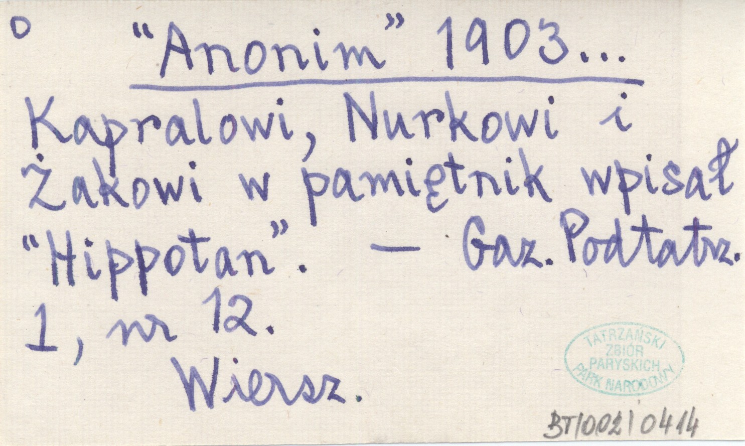 Projekt Digitalizacja fiszek z Bibliografią Tatr i Podtatrza Witolda Henryka Paryskiego jest finansowany ze środków Ministra Kultury i Dziedzictwa Narodowego oraz Tatrzańskiego Parku Narodowego.