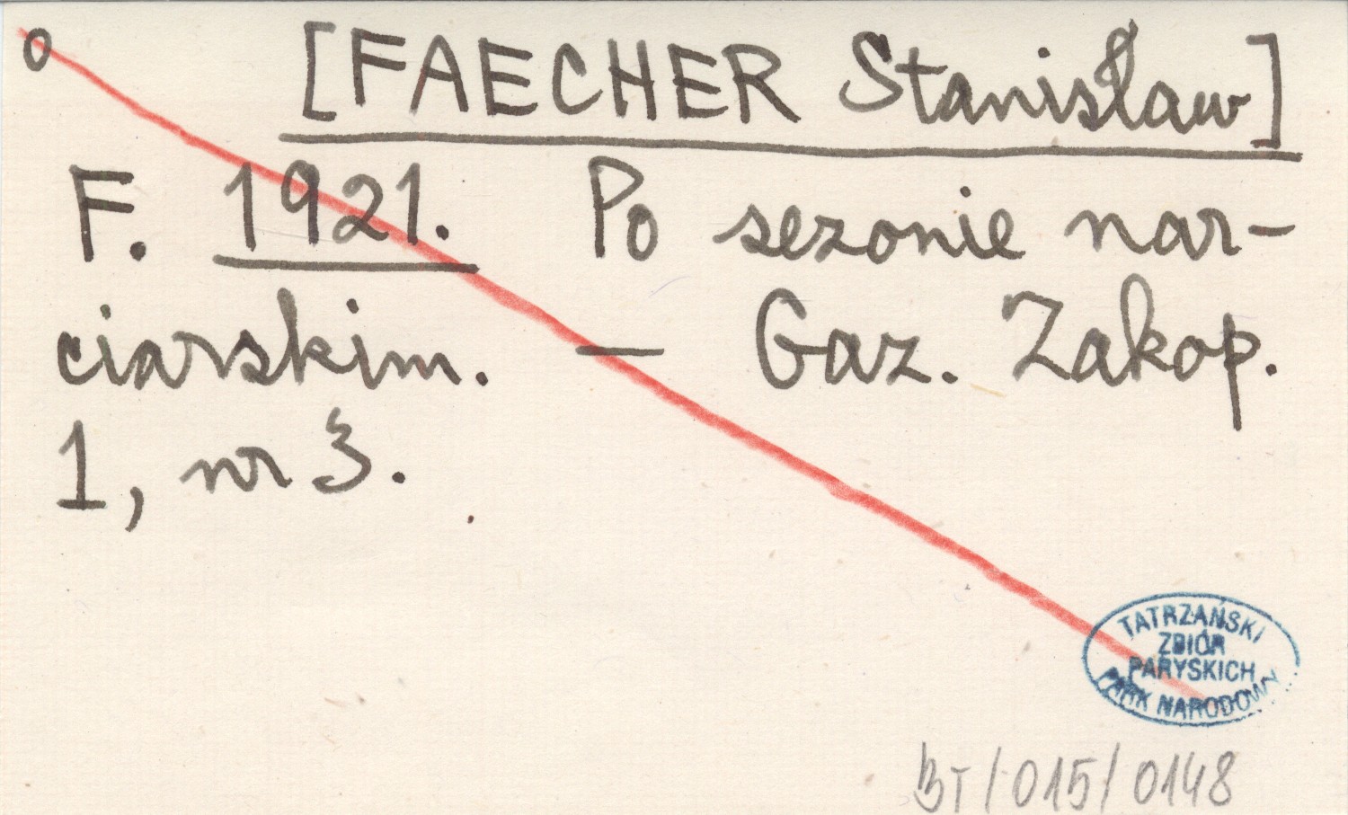 F. [FAECHER Stanisław] 1921 Po sezonie narciarskim.
