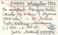 FABRY Władysław 1933 Na szczytach. Premjera Halki (działo się w dniu 1 stycznia 1858 roku).