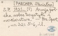 S. F. [FAECHER Stanisław] 1921... [?] Armja polska wobec turystyki i narciarstwa.