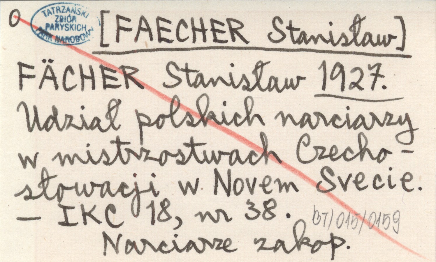 FÄCHER Stanisław [FAECHER Stanisław] 1927 Udział polskich narciarzy w mistrzostwach Czechosłowacji w Novem Svecie.