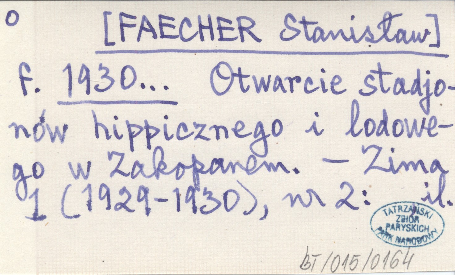 f. [FAECHER Stanisław] 1930... Otwarcie stadjonów hippicznego i lodowego w Zakopanem.