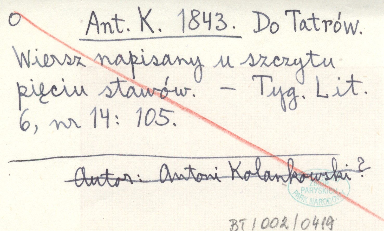 Ant. K. 1843 Do Tatrów. Wiersz napisany u szczytu pięciu stawów.