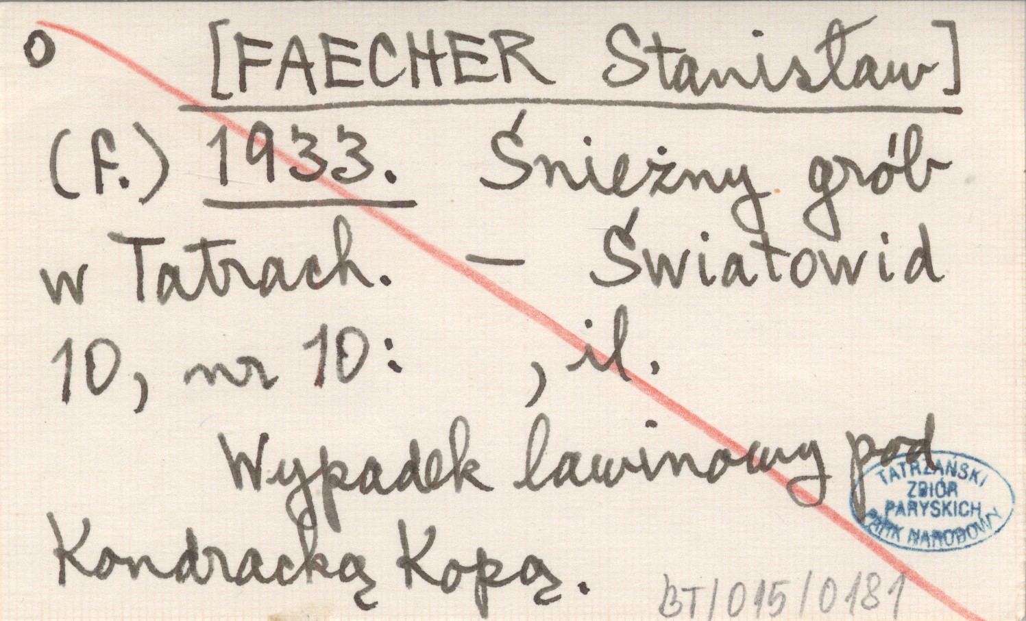 (f.) [FAECHER Stanisław] 1933 Śnieżny grób w Tatrach.