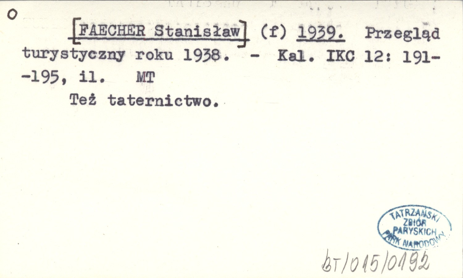 (f) [FAECHER Stanisław] 1939 Przegląd turystyczny roku 1938.