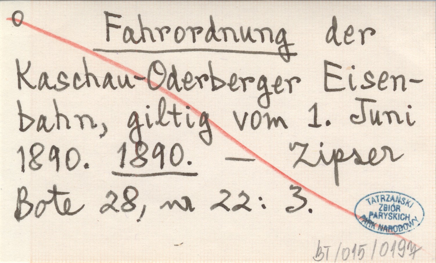 Fahrordnung der Kaschau-Oderberger Eisenbahn, giltig vom 1. Juni 1890. 1890