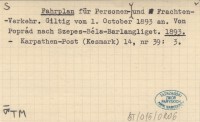 Fahrplan für Personen- und Frachten-Verkehr. Giltig vom 1. October 1893 an. Von Poprád nach Szepes-Béla-Berlangliget. 1893