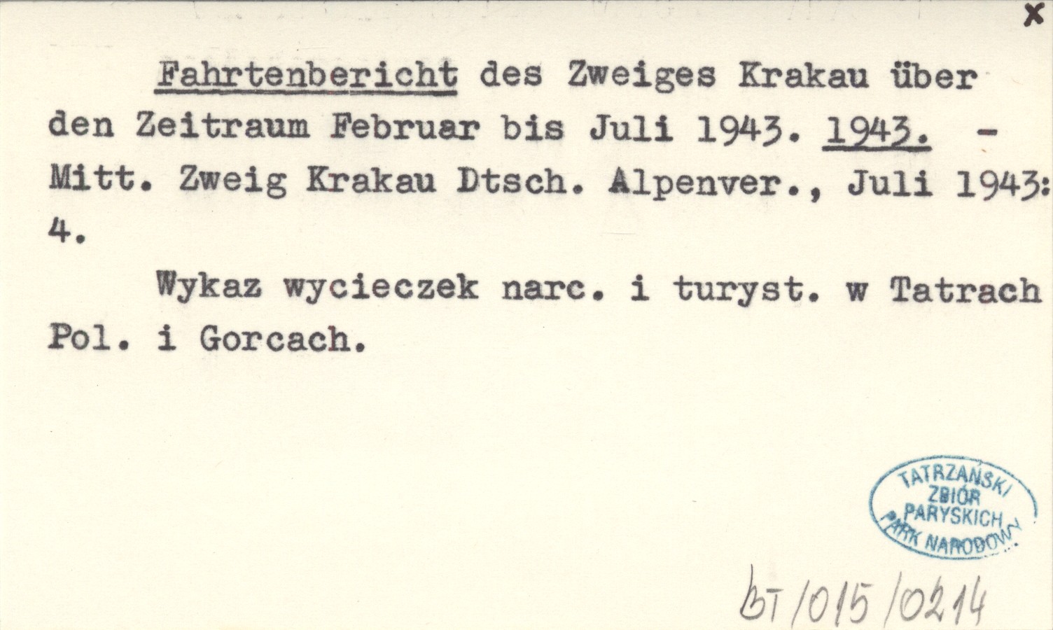Fahrtenbericht des Zweiges Krakau über den Zeitraum Februar bis Juli 1943. 1943