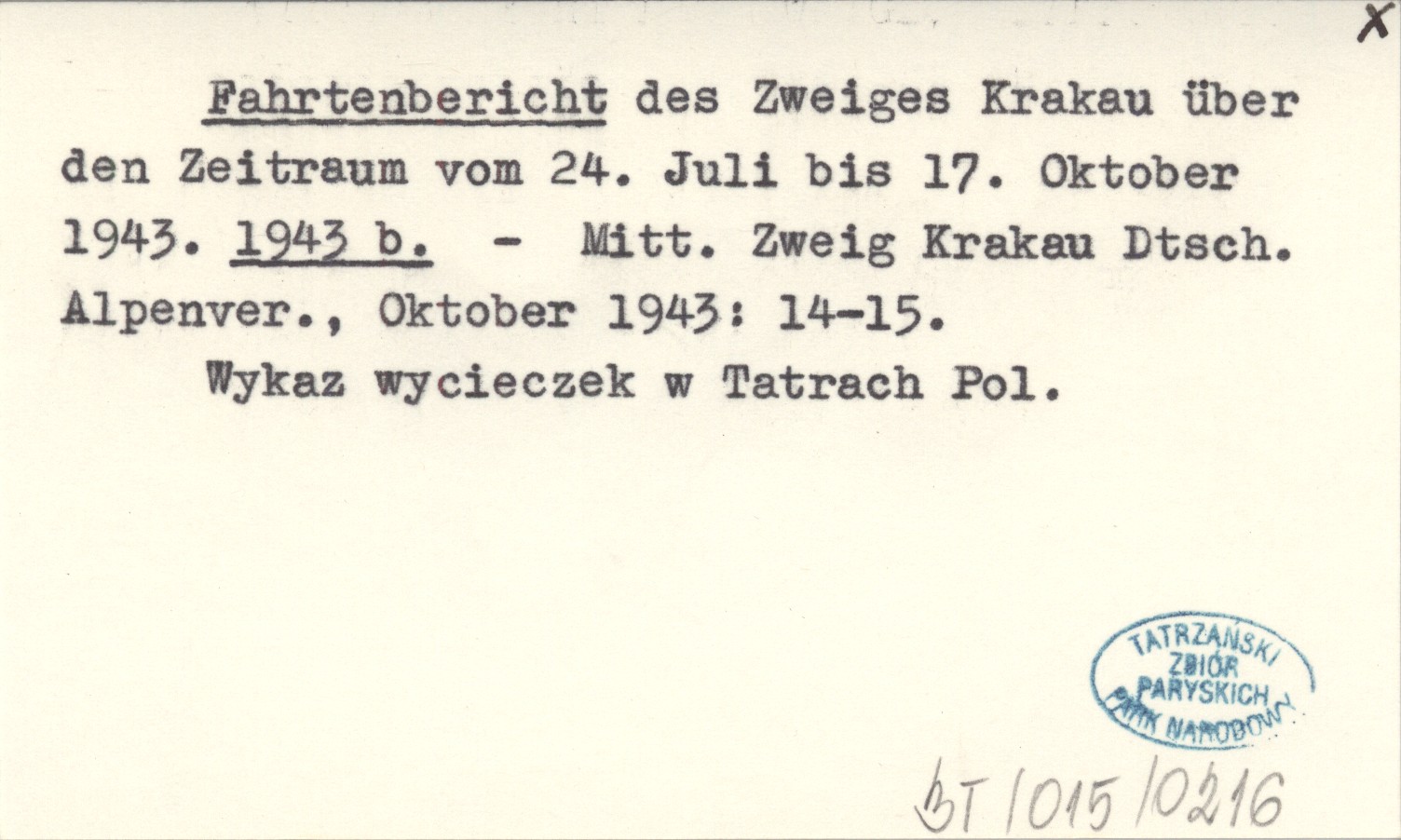 Mitteilungen Zweig Krakau des Deutschen Alpenvereins, October 1943: 14-15. Wykaz wycieczek w Tatrach Polskich.