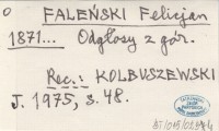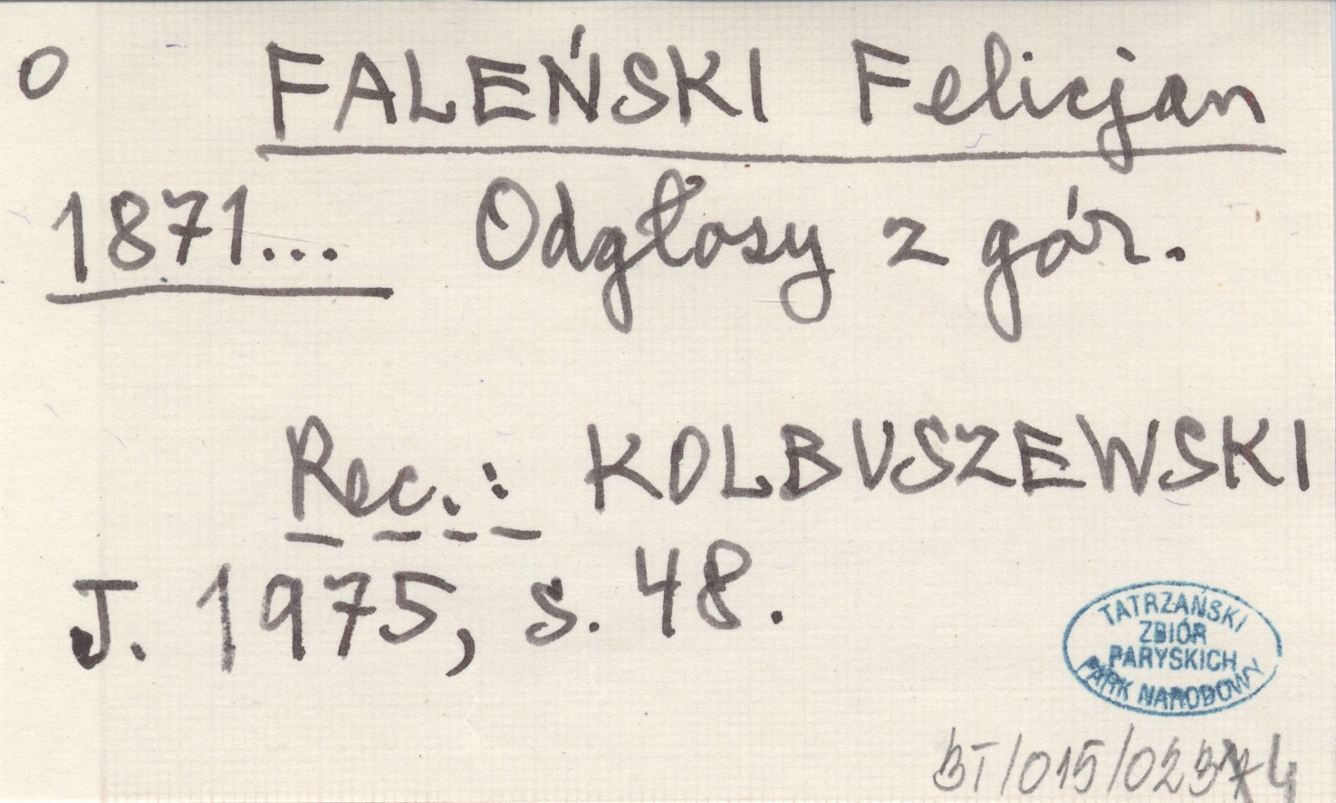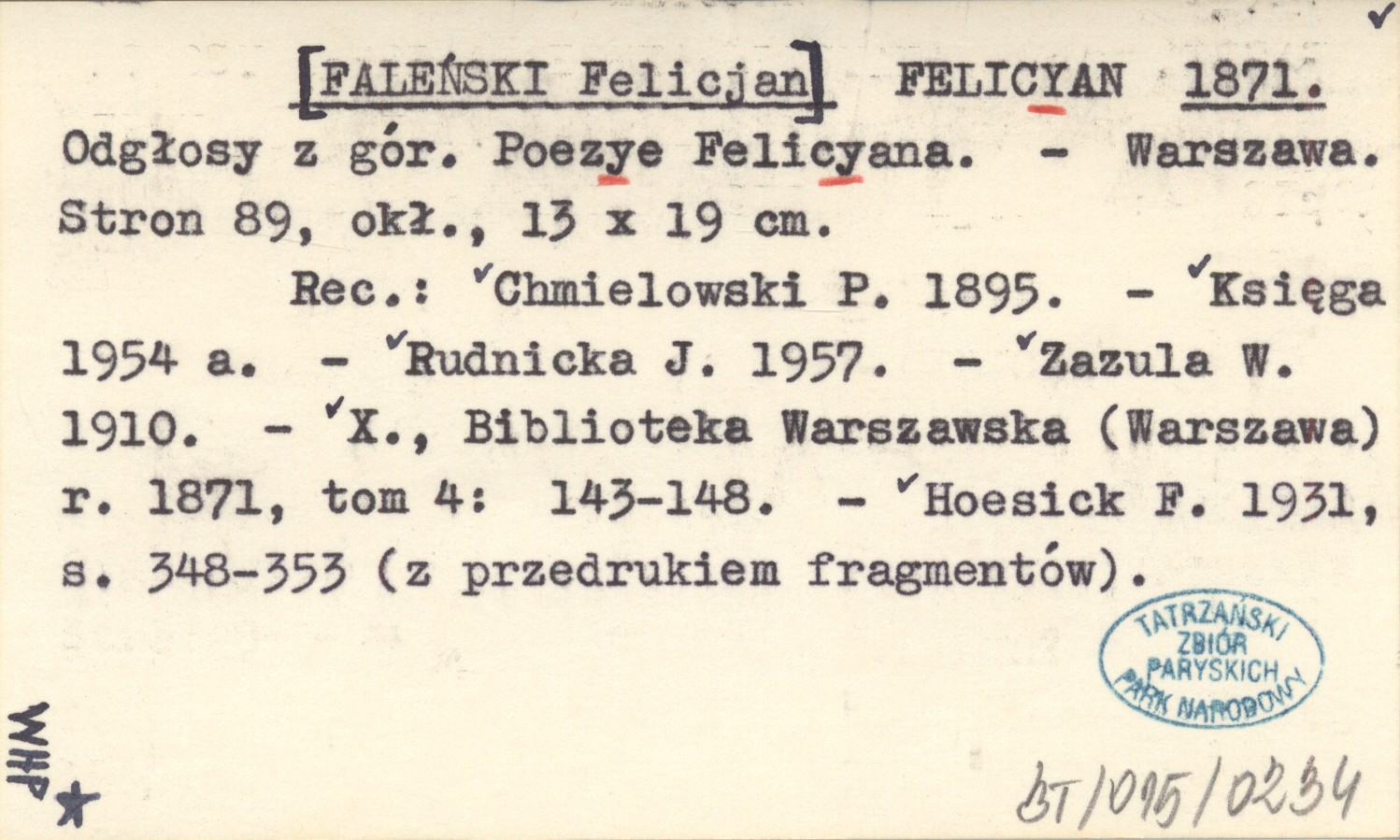 FELICYAN [FALEŃSKI Felicjan] 1871 Odgłosy z gór. Poezye Felicyana.