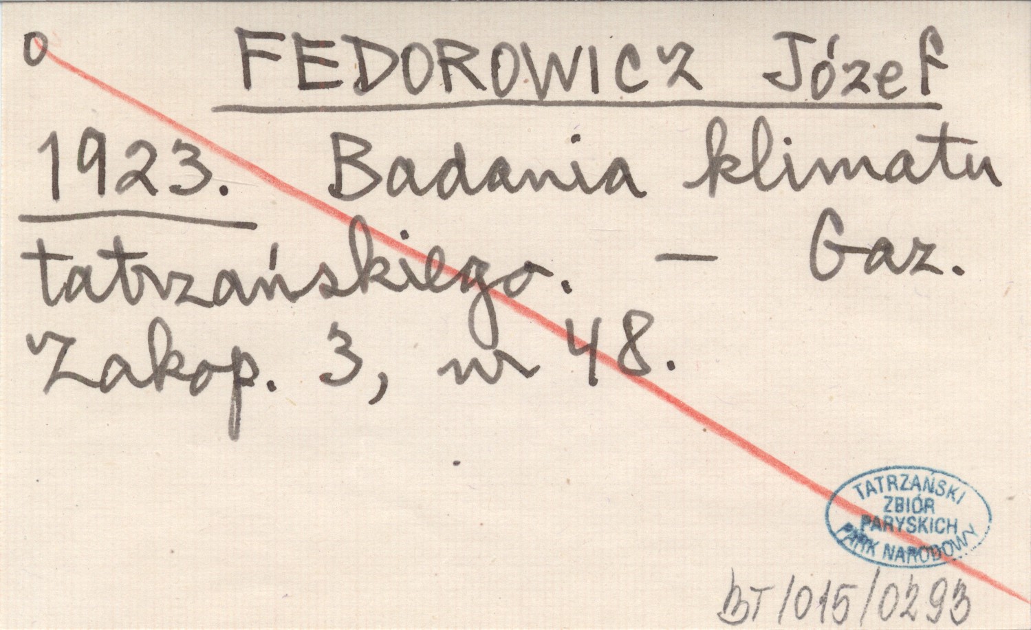 FEDOROWICZ Józef 1923 Badania klimatu tatrzańskiego.
