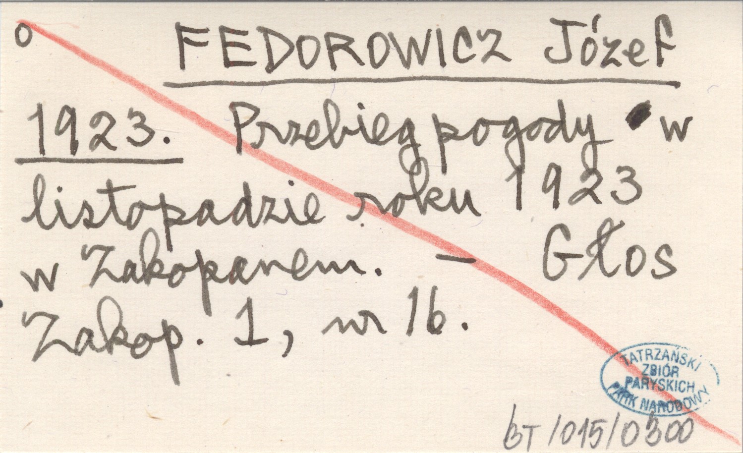 FEDOROWICZ Józef 1923 Przebieg pogody w listopadzie roku 1923 w Zakopanem.