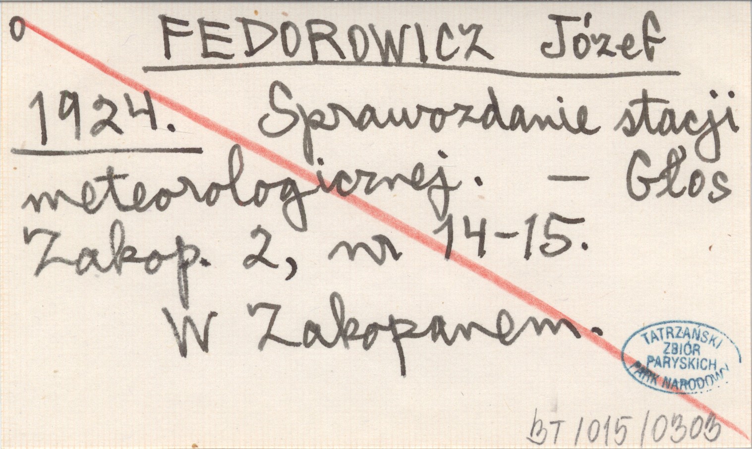 FEDOROWICZ Józef 1924 Sprawozdanie stacji meteorologicznej.