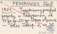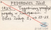 FEDOROWICZ Józef 1924 Tygodniowy przegląd pogody w Zakopanem.