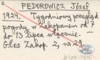 FEDOROWICZ Józef 1924 Tygodniowy przegląd pogody w Zakopanem od 14-go do 20-go lipca włącznie.