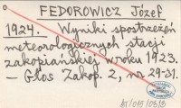 FEDOROWICZ Józef 1924 Wyniki spostrzeżeń meteorologicznych stacji zakopiańskiej w roku 1923.