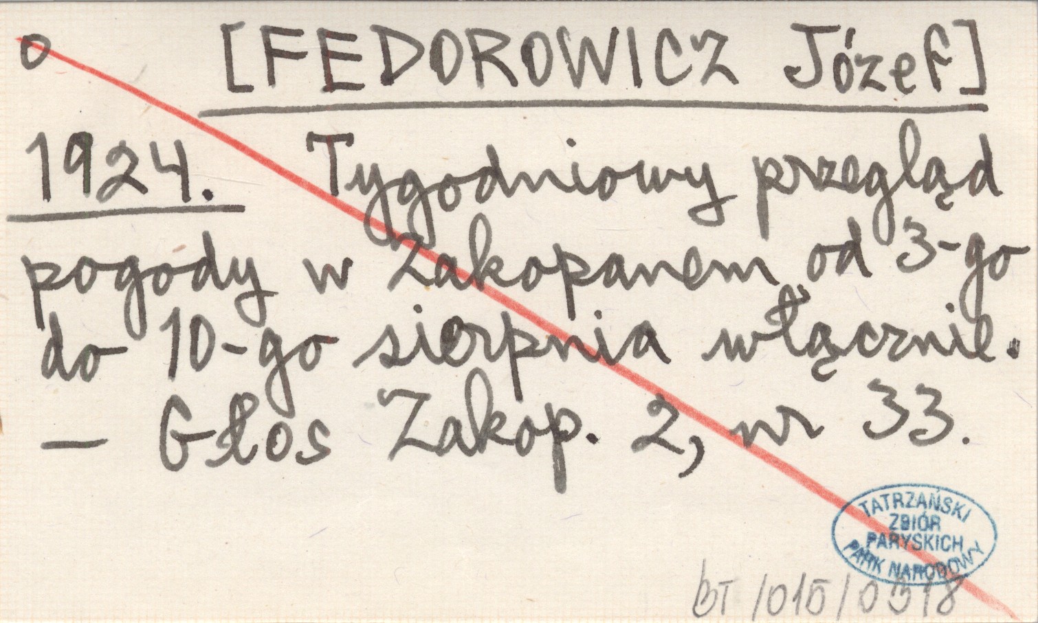 Projekt Digitalizacja fiszek z Bibliografią Tatr i Podtatrza Witolda Henryka Paryskiego jest finansowany ze środków Ministra Kultury i Dziedzictwa Narodowego oraz Tatrzańskiego Parku Narodowego.