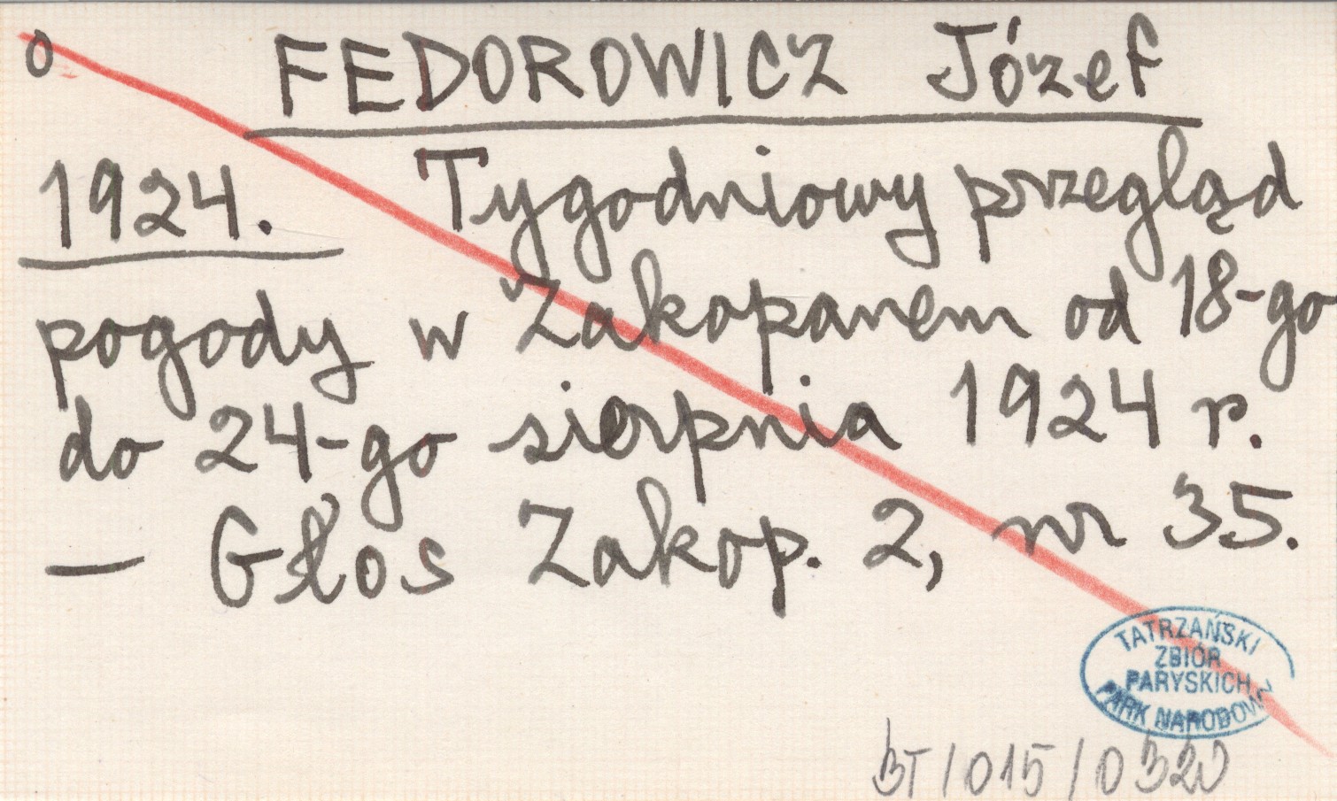 Projekt Digitalizacja fiszek z Bibliografią Tatr i Podtatrza Witolda Henryka Paryskiego jest finansowany ze środków Ministra Kultury i Dziedzictwa Narodowego oraz Tatrzańskiego Parku Narodowego.
