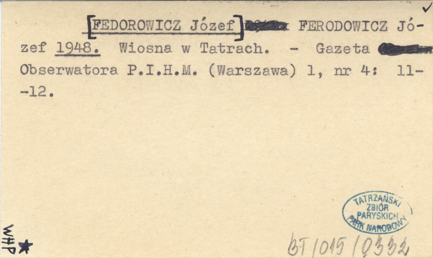 FERODOWICZ Józef [FEDOROWICZ Józef 1948 Wiosna w Tatrach.