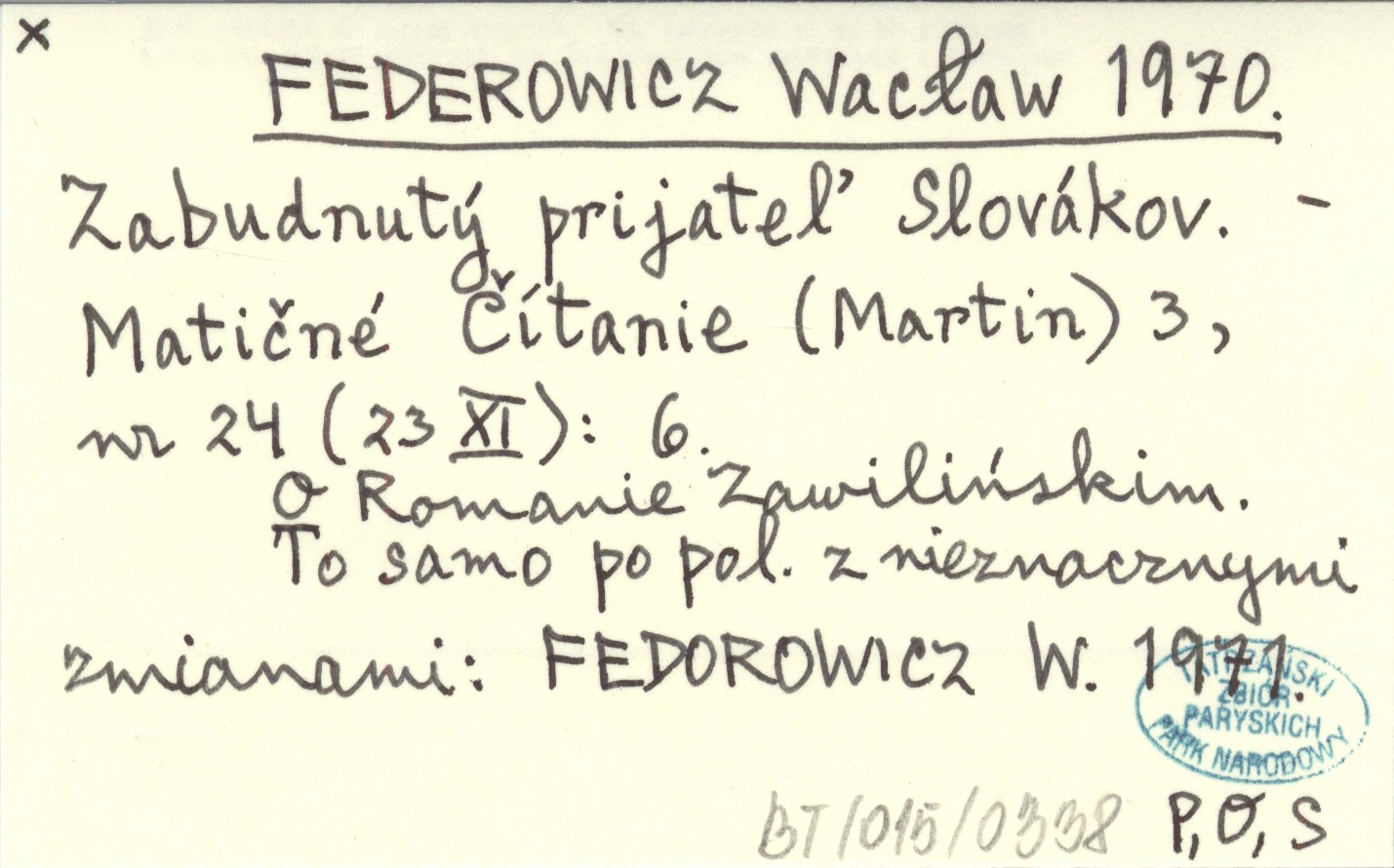 Matičné Čítanie (Martin) , 3, nr 24 (23 XI): 6. O Romanie Zawilińskim. To samo po pol. z nieznacznymi zmianami: FEDOROWICZ W. 1971