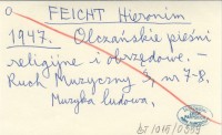 FEICHT Hieronim 1947 Olczańskie pieśni religijne i obrzędowe.